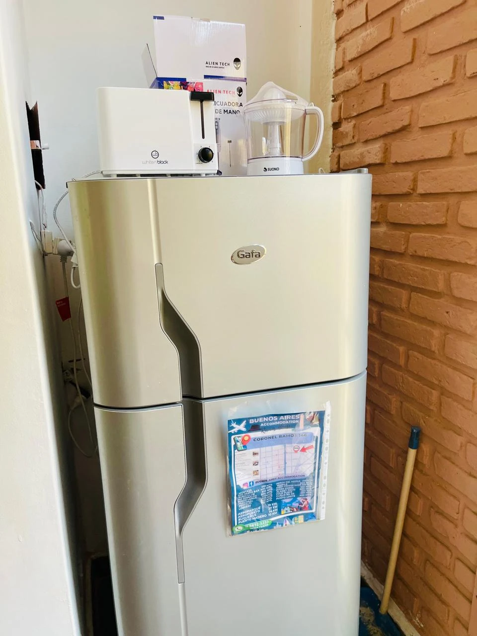 - Cocina Equipada: Una cocina separada y completamente equipada, que incluye una barra de desayuno con dos bancos, perfecta para empezar el día. Dispone de heladera con freezer, fogón a gas digital, horno eléctrico digital, horno microondas, licuadora, exprimidor de frutas, cafetera y tostadora. Encontrarás también todos los utensilios básicos de cocina, desde ollas y sartenes hasta platos y copas de vino.